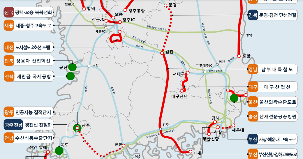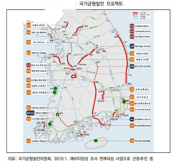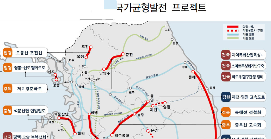 제 5차 국토종합계획에서 발표한 국가균형발전 프로젝트를 다시 확대하여 담아보았습니다.