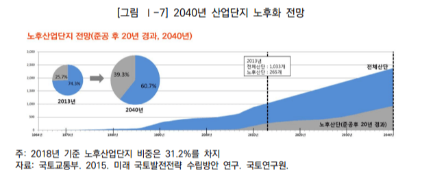 2040년이 되면 준공후 20년이 경과되는 노후산업단지가 지속적으로 증가하게됩니다.