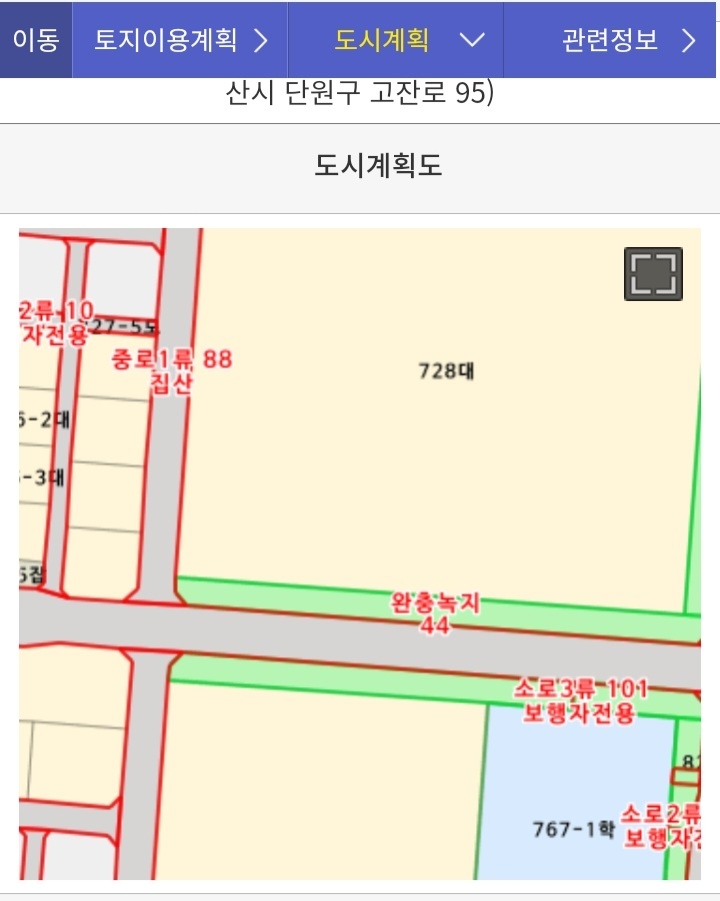 완충녹지에 저촉된 토지는 건폐율, 용적율 등의 산정에서 저촉된 부분만큼 제외됩니다. 그만큼 해당 토지에 건축하는 건축물의 바닥 면적은 좁아지고 용적률은 낮아지게 되는 것입니다. 실제 완충녹지 저촉 여부는 토지이용계획확인서로 확인할 수 있으며 정확한 위치, 저촉 범위 등 상세 확인은 '도시계획도면'을 참고해야 가능합니다. 그러나 토지이용규제정보서비스에서 부수적으로 제공되는 컬러 지적 임야도를 통해서도 어느 정도 판단할 수는 있습니다.