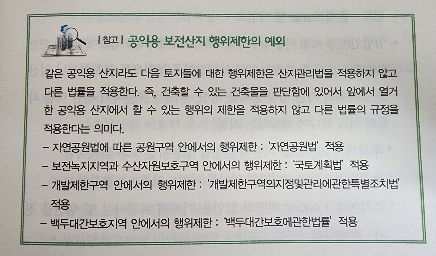 투자 측면에서 공익용 산지는 산지전용 제한지역보다는 허용범위가 넓지만 사업성있는 건축물은 어렵습니다. 극히 일부를 제외하고는 투가가치가 매우 낮다고 볼 수 있습니다.
